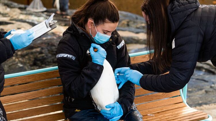 Всего необходимо вакцинировать двенадцать пингвинов. Птицы из группы риска, самые старые, получили первые дозы вакцины в среду. В четверг настал черед младших.