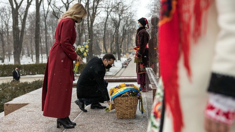 Президент Украины Владимир Зеленский вместе с супругой Еленой почтили память Тараса Шевченко по случаю 207-й годовщины со дня рождения украинского поэта и художника. Украинский лидер с первой леди страны возложили цветы к памятнику Кобзарю, который находится в Киеве.