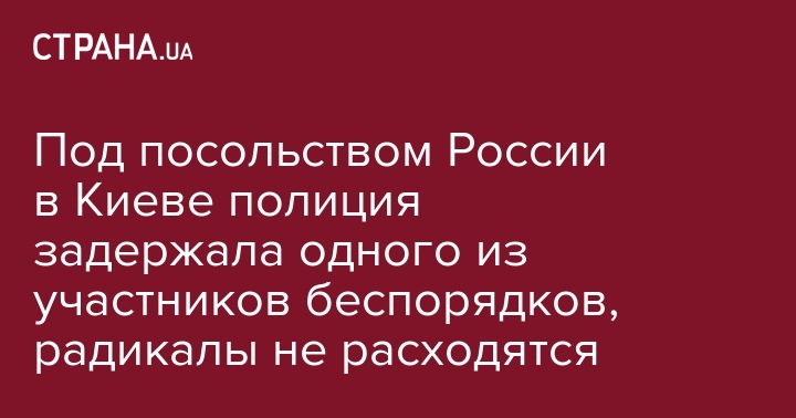 Под посольством России в Киеве полиция задержала одного из участников беспорядков, радикалы не расходятся