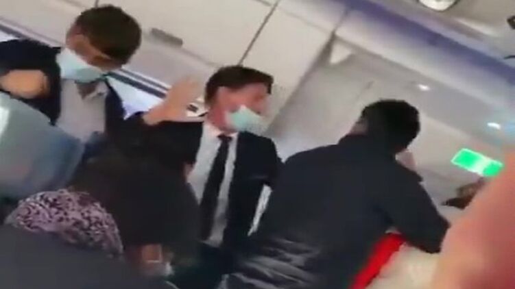 На видео запечатлен этот инцидент, видно, как пассажира пытаются успокоить.