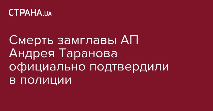 Информацию о смерти заместителя главы Администрации президента Украины Андрея Таранова подтвердил журналистам пресс-секретарь Нацполиции Ярослав Тракало, передает "УП".