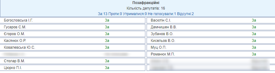 Полным составом - блок Владимира Литвина, который тогда был спикером парламента. В том числе голосовал "за" и нынешний губернатор Одесской области Сергей Гриневецкий.