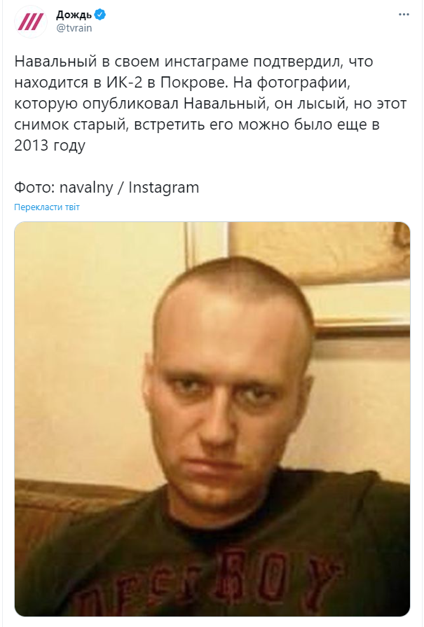 Напомним, 15 марта отбывающий срок в колонии во Владимирской области российский оппозиционер Алексей Навальный опубликовал фото в новом образе - в учреждении ему побрили голову.