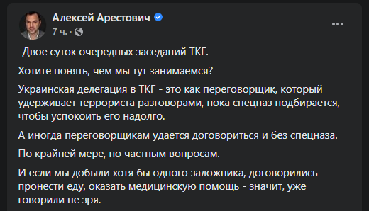 Соответствующий комментарий появился под постом Арестовича о тяжелой работе переговорщиков