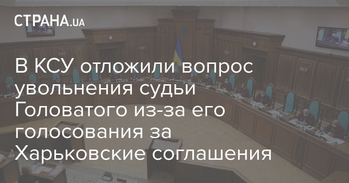 Напомним, изначально в повестке дня КСУ на 17 марта было рассмотрение дисциплинарного проступка судьи Александра Тупицкого. Однако Тупицкий изменил повестку и должно было рассматриваться соответствие должности замглавы КСУ Сергея Головатого. Основанием для этого стали обращения лидера "Братства" Дмитрия Корчинского и нардепа ГеоЛероса. Причём последний аргументирует необходимость убрать Головатого тем, что он... был в числе депутатов, голосовавших в 2010 году за Харьковские соглашения