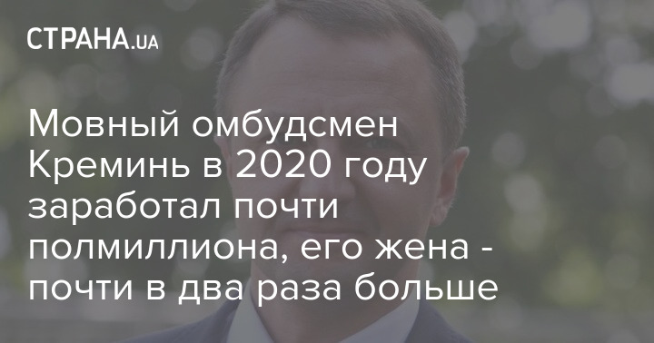 Уполномоченный по защите государственного языка Тарас Креминь за 2020 год заработал 475,5 тыс. гривен. Таким образом, его среднемесячный доход составил 39,6 тыс. гривен.