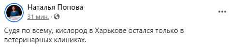 Утром 22 марта она сообщила, что кислород в Харькове остался только в ветеринарных клиниках.