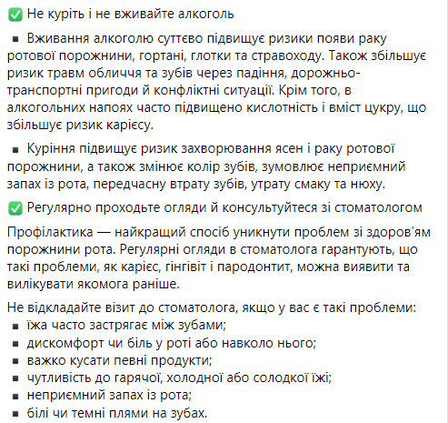В МОЗ дали украинцам пять советов, как сохранить здоровыми зубы и полость рта. Инфографика
