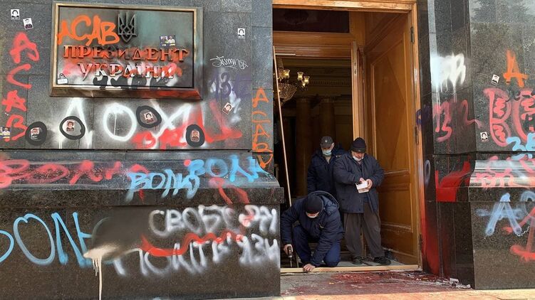 "По состоянию на сейчас около 10 компаний предложили свои услуги по уборке краски с гранита. Они оценивают объем работ и определяют, имеют ли соответствующие химические растворы. Стоимость этих услуг может составить 250-300 тысяч гривен. Продолжается подбор компаний и подсчеты необходимых средств для проведения других восстановительных работ. Да, нужно заменить несколько дверей, окон, сделать ремонт поврежденных помещений, в том числе отдельных кабинетов и помещений на разных этажах, где произошло возгорание", - рассказали в Офисе президента.