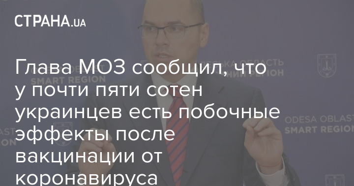 Глава МОЗ сообщил, что у почти пяти сотен украинцев есть побочные эффекты после вакцинации от коронавируса