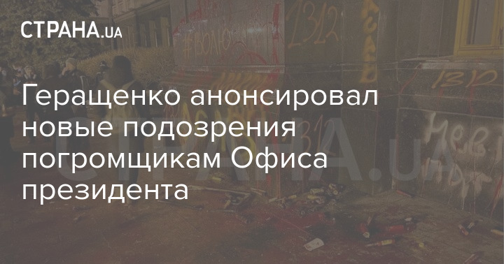 Геращенко анонсировал новые подозрения погромщикам Офиса президента