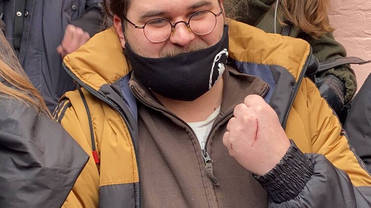 Влад Сорд показал порезы на руке и назвал это символом поддержки политзаключённых. Фото: "Страна"