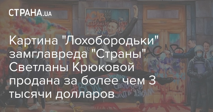 Заместитель главного редактора "Страны" Светлана Крюкова продала свою картину под названием "Лохобородьки", посвященную недавнему погрому здания Офиса президента на митинге в поддержку радикала Сергея Стерненко.
