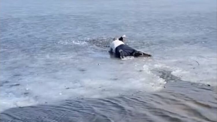 Киевлянин спас девушку, которая провалилась под лед. Видео