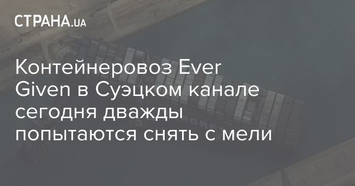 Управление Суэцкого канала заявило, что намерено предпринять сегодня как минимум две попытки снять с мели застрявший в Суэцком канале контейнеровоз Ever Given.