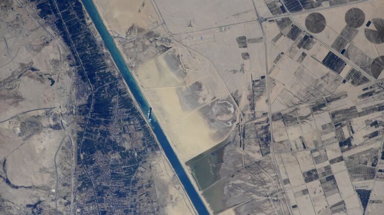 На Международной космической станции сделали фотографии контейнеровоза Ever Given, который сел на мель и полностью заблокировал движение в Суэцком канале.