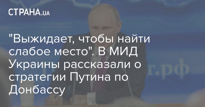 Президент России Владимир Путин занял выжидательную позицию в отношении ситуации на Донбассе. По мнению главы МИД Украины Дмитрия Кулебы, он ищет слабое место, чтобы решить конфликт.