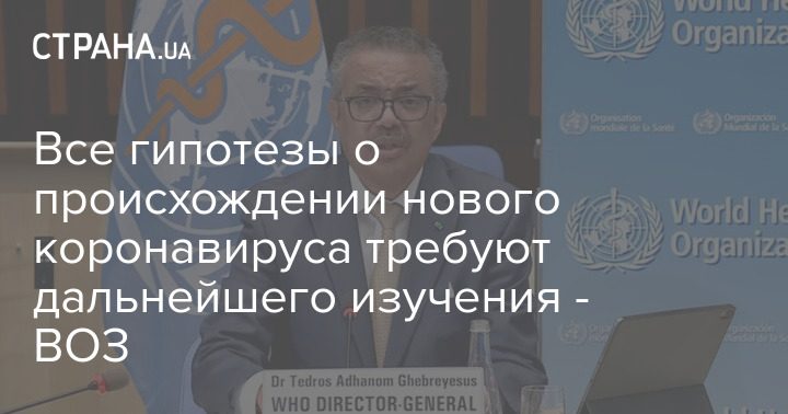 Генеральный директор Всемирной организации здравоохранения Тедрос Адханом Гебрейесус заявил, что ВОЗ рассматривает все гипотезы о происхождении коронавируса. Он считает, что все они требуют дальнейшего изучения.