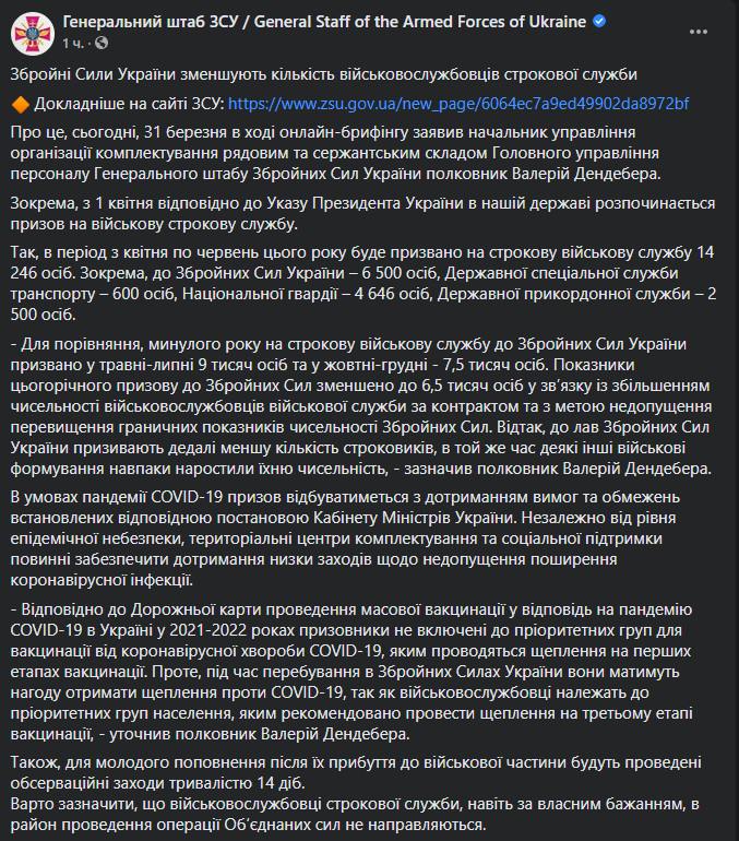 После голосования в Раде за ужесточающий уклонение от призыва закон, в генштабе ВСУ отчитались о радикальном сокращении числа призывников. Во ходе весеннего призыва, который начнется с 1 апреля, численность призывников ВСУ сократят с 9000 человек до 6500.