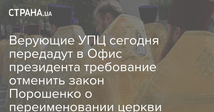 В четверг, 1 апреля, верующие Украинской православной церкви придут на Банковую, чтобы передать в Офис президента обращение, в котором требуют отменить неконституционный закон о принудительном изменении названия УПЦ.