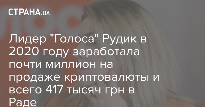 Лидер партии "Голос" Кира Рудик в 2020 году получила 1,8 млн гривен дохода. Из них 966 тысяч гривен она заработала на продаже криптовалюты, зарплата в Раде оказалась более чем в два раза меньше этой сумму и составила 417 тысяч гривен.