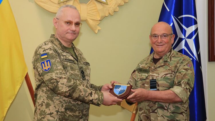 Главнокомандующий Вооруженных сил Украины генерал-полковник Руслан Хомчак провел встречу с главой Военного комитета НАТО главным маршалом авиации Стюартом Пичем в Национальной академии сухопутных войск им. гетмана Петра Сагайдачного.