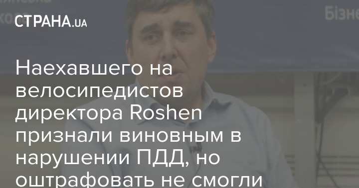 Киево-Святошинский районный суд Киевской области признал главу корпорации "Roshen" Вячеслава Москалевско, который сбил двух велосипедистов под столицей, виновным в нарушении ПДД. При этом суд не смог привлечь его к админответственности из-за того, что срок наложения административного взыскания истек.