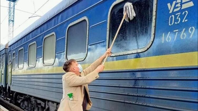 Датский журналист Йоханнес Вамберг Андерсен, который ехал на поезде "Укрзализныци" сообщением "Киев - Измаил", был недоволен чистотой вагона и на одной из остановок самостоятельно помыл свое окно при помощи швабры.