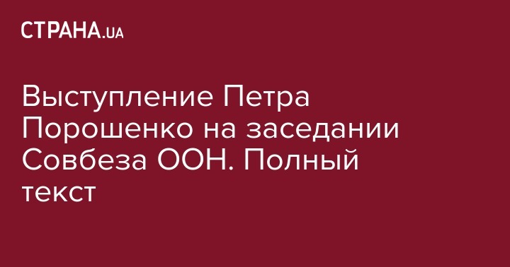 Президент Петр Порошенко в среду, 21 сентября, выступил на заседании высокого уровня Совета безопасности ООН. Об этом сообщает пресс-служба главы государства.
