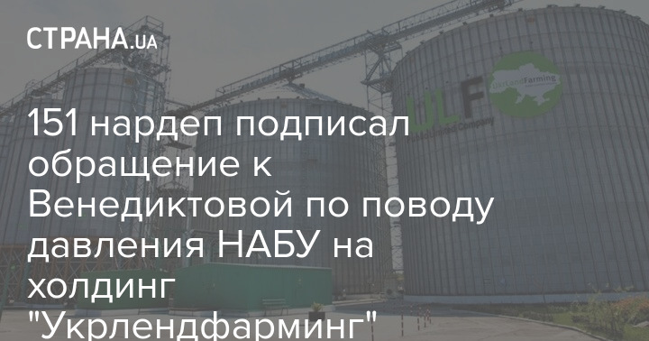 151 народный депутат подписал обращение к генеральному прокурору Ирине Венедиктовой в поддержку коллектива холдинга "Укрлендфарминг" в связи с продолжающимся пять лет уголовным преследованием главы и основателя группы Олега Бахматюка со стороны Национального антикоррупционного бюро Украины (НАБУ), которое бьет по работе одной из крупнейших аграрных компаний Украины.