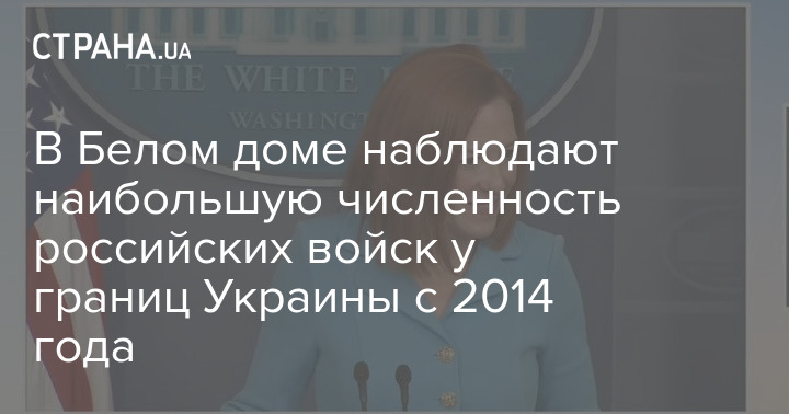 Пресс-секретарь Белого дома Джен Псаки заявила, что Российская Федерация сосредоточила на границе с Украиной самое большое число войск с 2014 года. По ее словам, в США обеспокоены этим.