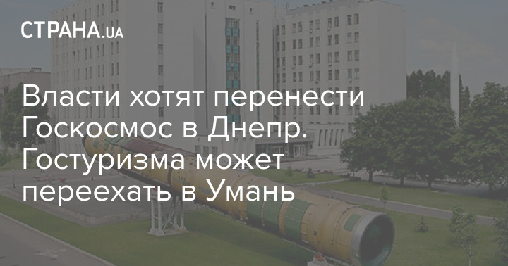 Главный офис Государственного космического агентства может обосноваться в Днепре, а главк Государственного агентства развития туризма (ГАРТ) - в Полтаве, Черкассах или Умани. Такую возможность изучают в правительстве.