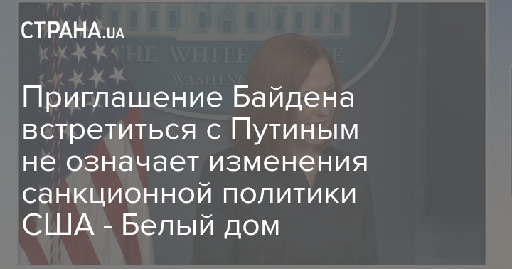 Представитель Белого дома Джен Псаки заявила, что приглашение Джо Байдена Владимиру Путину встретиться не означает отказа США от своей санкционной политики в отношении Москвы.
