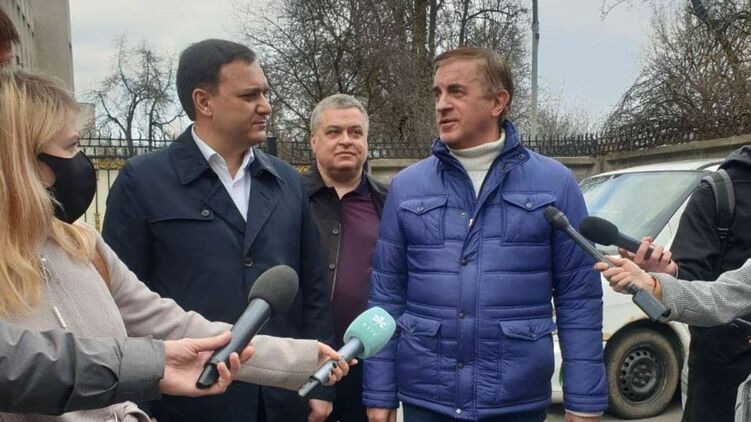 Встречать его пришли народные депутаты от ОПЗЖ Виктор Чёрный и Анатолий Бурмич.