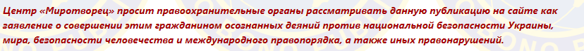И требованием к правоохранительным органам рассматривать заявление "Миротворца" как заявление о совершении Семейкиной "осознанных деяний против национальной безопасности Украины, мира, безопасности человечества и международного правопорядка, а также иных правонарушений".