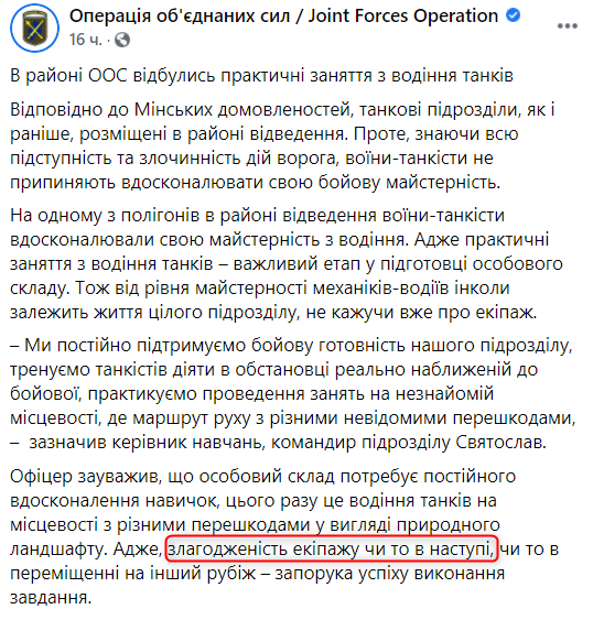 ВСУ же прямо говорит, что ведет танковые учения на Донбассе. Вот фото с них, опубликованное вчера штабом ООС.