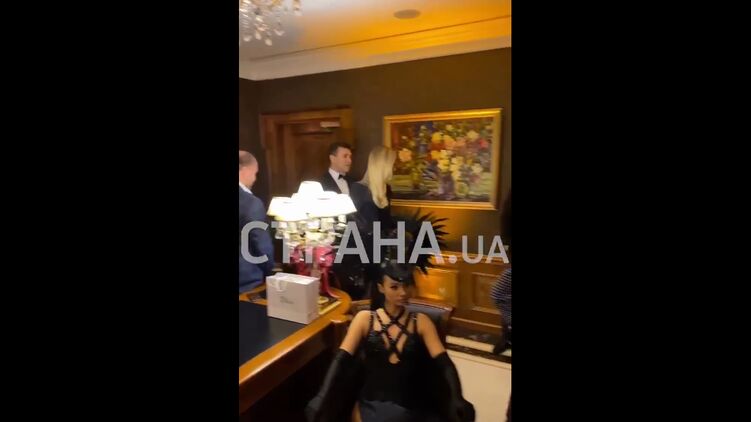 Также на видео показано, как празднование покидает губернатор Черкасской области Скичко вместе со своей супругой - Елизаветой Юрушевой - управляющей отелем Fairmont.