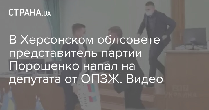 В пятницу, 23 апреля, в Херсонском облсовете произошла стычка после того, как представитель "Евросолидарности" Сергей Хлань попытался сорвать выступление лидера областной организации "Оппоплатформы" Егора Устинова.