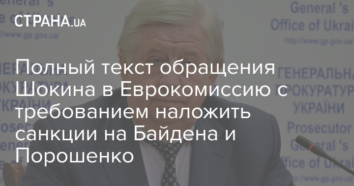 За нарушение его прав Шокин просит ЕК наложить санкции на Джо Байдена (ныне уже президента США) и Петра Порошенко.