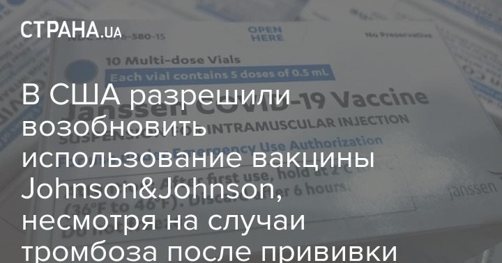 В США разрешили возобновить использование вакцины Johnson&Johnson, несмотря на случаи тромбоза после прививки