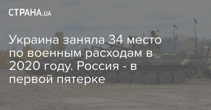 Украина заняла 34 место по военным расходам в 2020 году. Россия - в первой пятерке
