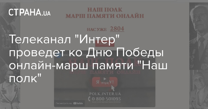 Телеканал "Интер" ко Дню Победы-2021 проведет онлайн-марш памяти "Наш полк". С 21 апреля все желающие могут присоединиться к мероприятию, чтобы отдать дань памяти и уважения тем, кто защищал родину во время Великой Отечественной войны.