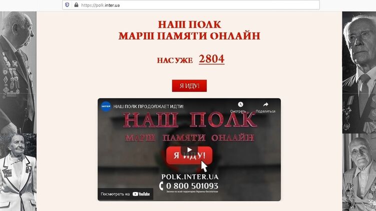 Телеканал "Интер" проводит марш памяти "Наш полк" онлайн. Скриншот