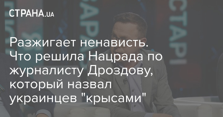 Конкретно решение Нацрады касается эскапады Дроздова о зрителях закрытых оппозиционных телеканалов 112, NewsOne и ZIK. Телеведущий обозвал их "имбецилами", "одноклеточными" и "крысами".