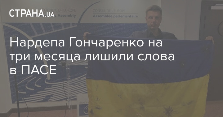 Инцидент с флагом, который упомянул Гончаренко, случился 20 апреля. В ходе своего выступления нардеп достал простреленный на Донбассе флаг Украины. Президент ПАСЕ Хендрик Дамс сделал ему замечание и попросил прекратить, однако Гончаренко продолжал говорить речь с флагом в руках. Это возмутило Дамса, в результате микрафон Гончаренко отключили.
