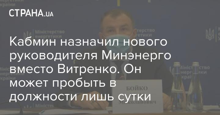 "Временным исполняющим обязанности министра энергетики был назначен заместитель министра энергетики Бойко Юрий Николаевич", - говорится в сообщении.