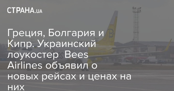 В среду, 28 апреля, новый украинский лоукост Bees Airlines открыл продажу билетов на авиарейсы из Киева в Грецию, Болгарию и Кипр. Запуск авиарейсов в Грецию запланирован уже на 29 мая.