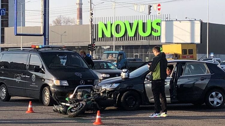 В Киеве на Левом берегу возле "Эпицентра" по улице Братиславский произошло столкновение легкового автомобиля Citroen и мотоцикла.