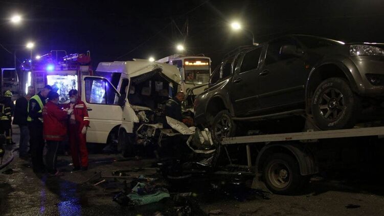 Смертельная авария в Днепре. Маршрутка столкнулась с грузовиком на мосту. Фото
