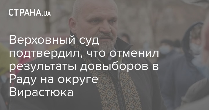 В субботу, 2 мая, Верховный Суд Украины подтвердил озвученную ранее информацию гражданской организации "Опора" о том, что отменил результаты голосования на избирательном округе №87 в Ивано-Франковской области. Там ранее ЦИК объявила победу спортсмена Василия Вирастюка, избиравшегося от "Слуги народа".